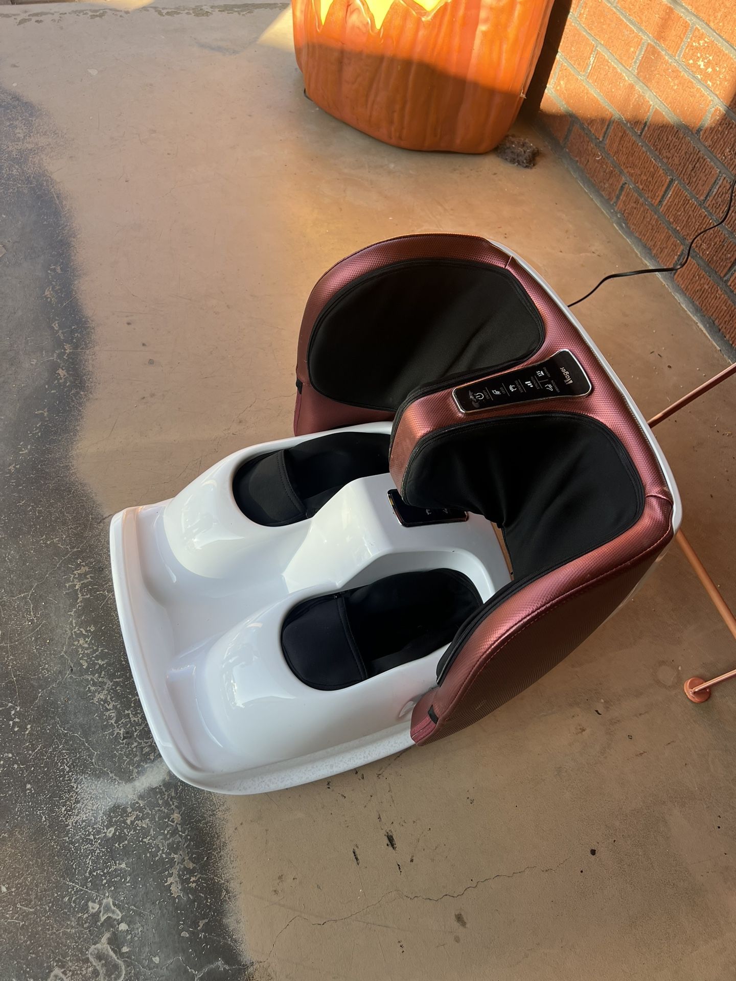 Selling a like-new, high-end electric massager designed to provide deep relief for tired and sore feet, ankles, and calves. This model features a sleek white and copper/rose gold finish that looks great in any room.