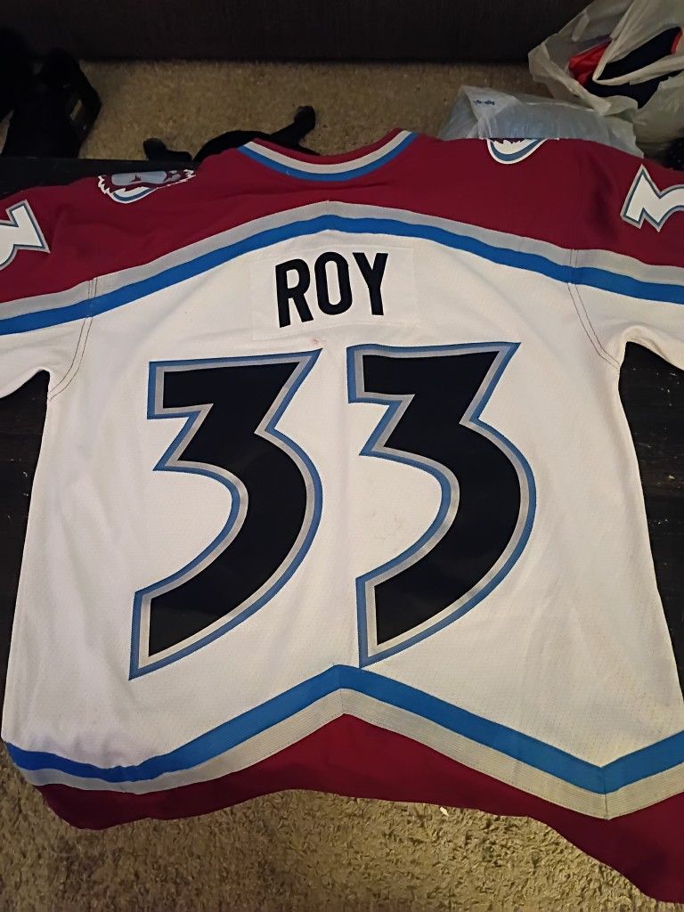 Patrick Roy 2000-01 Mitchell and Ness jersey. Used condition with a tiny stain on the back