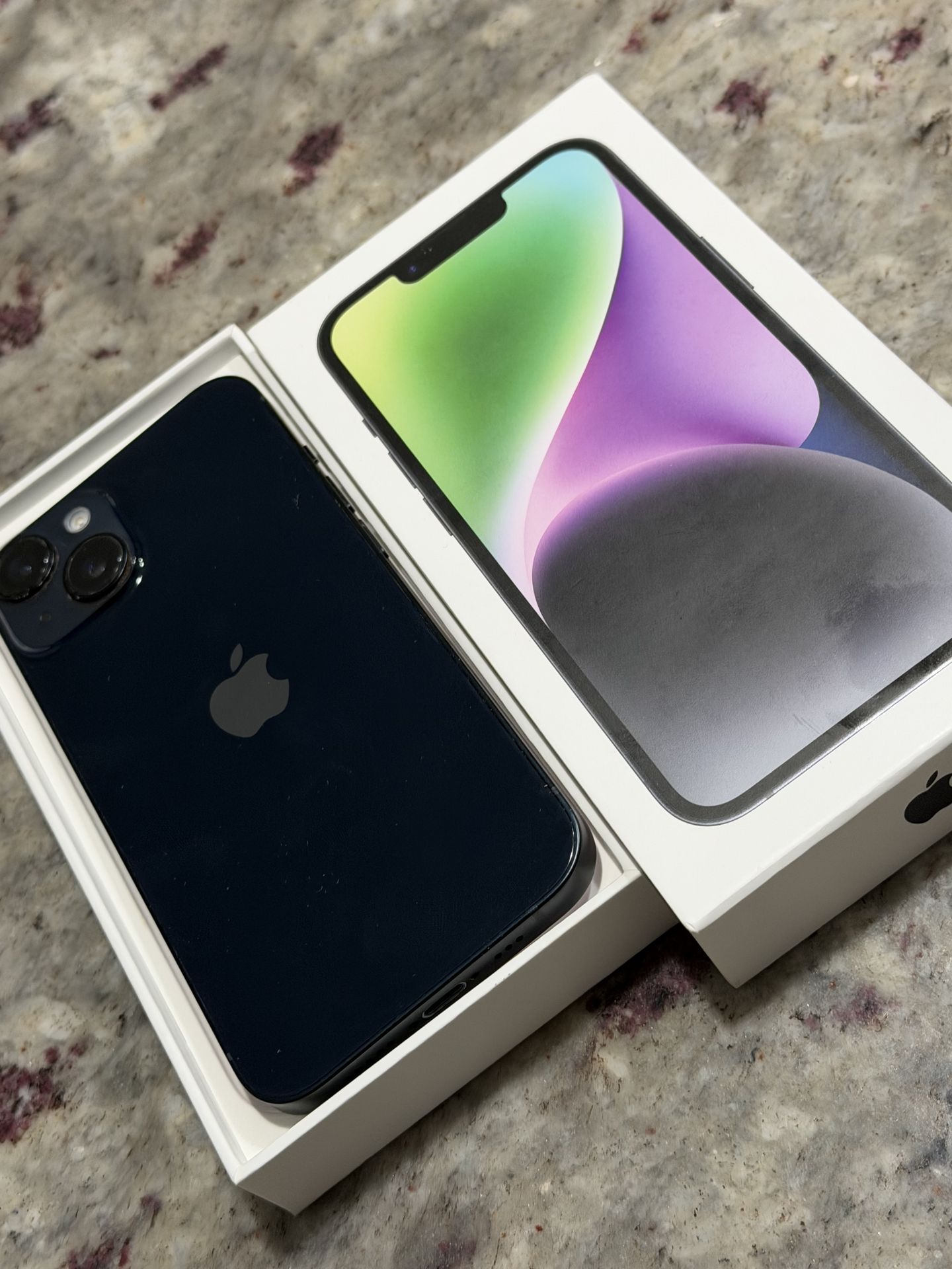 iPhone 14 128gb Works for T-Mobile or Metro PCS only Pictures of the phone is the actual phone Comes with box Perfect working condition