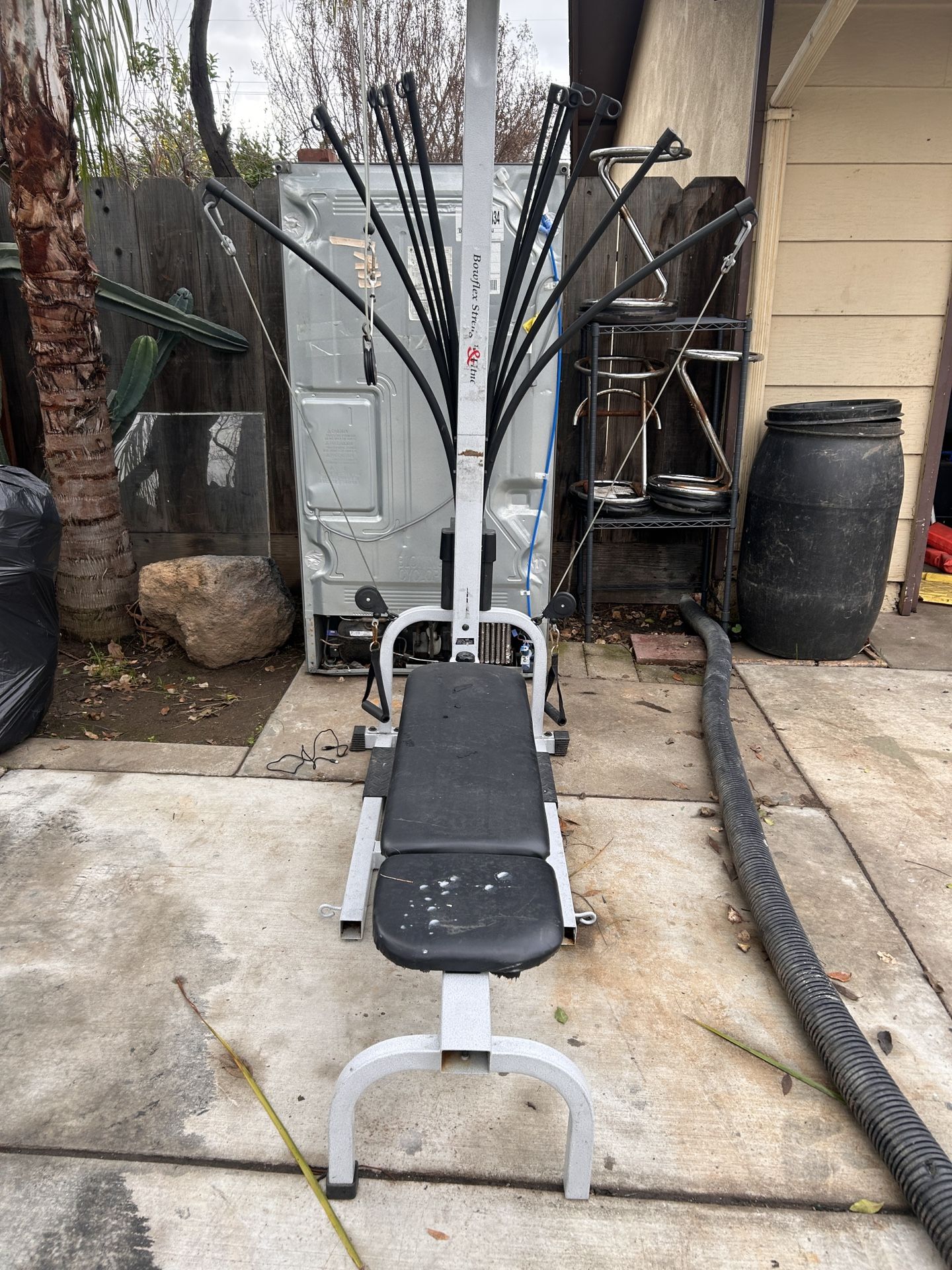 Heavy-duty multi-station home gym in solid working condition. This machine does it all: chest, back, arms, shoulders, legs, and core. Perfect for a home gym, garage setup, or backyard workout station. ✔️ Multiple cable stations ✔️ Bench included ✔️ Lat pulldown, chest press, leg extension/curl, arm work ✔️ Smooth pulley system ✔️ Sturdy steel frame ✔️ Commercial-style build Cosmetic wear on the pads from normal use (see photos), but structurally solid and fully functional. Nothing flimsy about it. 📍 Local pickup only 🛠️ Bring a truck and help to load 💰 Asking $400 OBO (open to reasonable offers) Great setup if you want to lift at home without paying gym fees. Message me if interested.