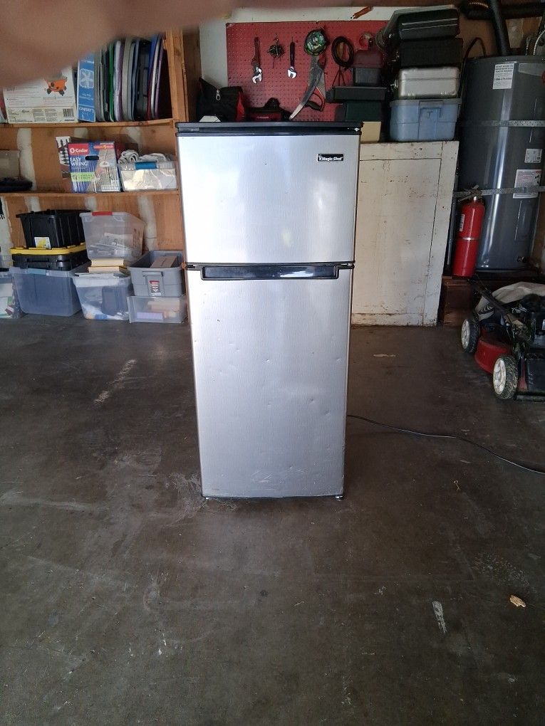 Separate refrigerator freezer.. Good shape. Clean. Runs well. Model number in photograph.