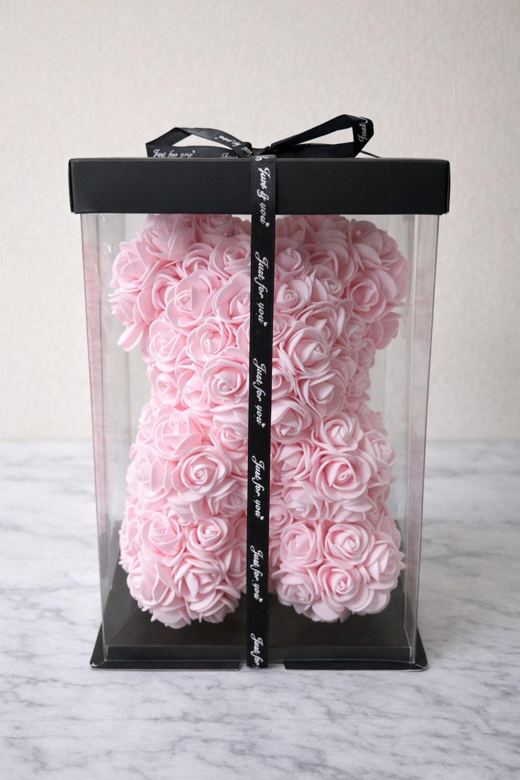 Cute pink rose teddy bear made of artificial foam roses, displayed in clear gift box with ribbon. Great ready-to-gift item for Valentine’s Day, anniversary, birthday, or room decor. No damage, clean, and kept in box. Approximately 10-11” in height. Pickup in Los Angeles or pay for shipping.