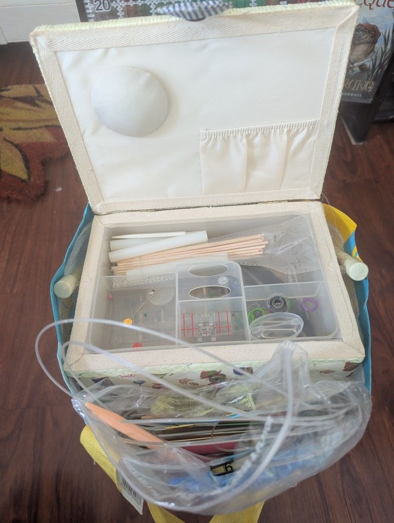 Someone gave me bags of craft supplies a while ago. I sorted through it and most of it I can't use or don't want. There are jewelry making supplies, crochet hooks, sewing machine feet, etc.