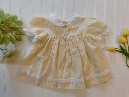 Vtg 60s Baby Girls 12 Months Yellow Stripe Daisy Dress