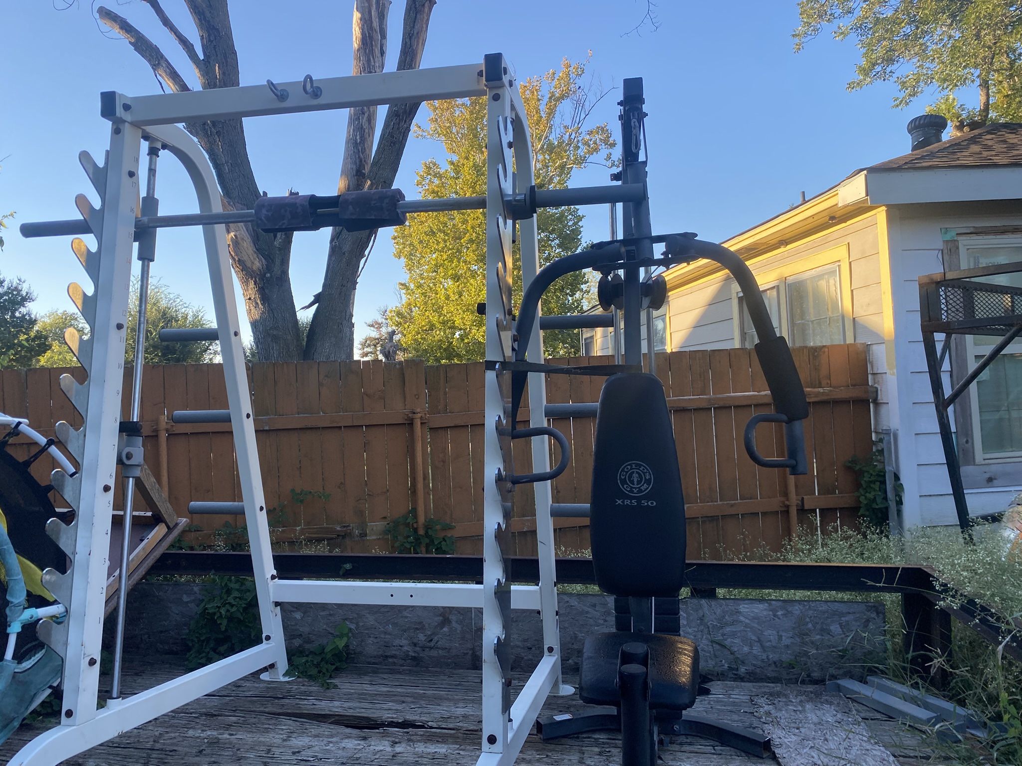 smith machine come with bench ,bar bunch of plates ,and the other machine next to it negotiable text me and ill send you a video of everything