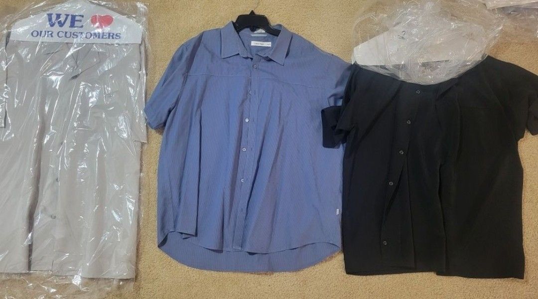Left is Oakley, middle Calvin Klein, right Elliot. Elliot is size Large but runs a little bigger, other 2 are x-large. Calvin Klein hasn't been dry cleaned, but the other 2 has For all 3 shirts only Checkout my other listings Banana republic, calvin klein, michael kors, polo ralph lauren, shirt, business casual, work