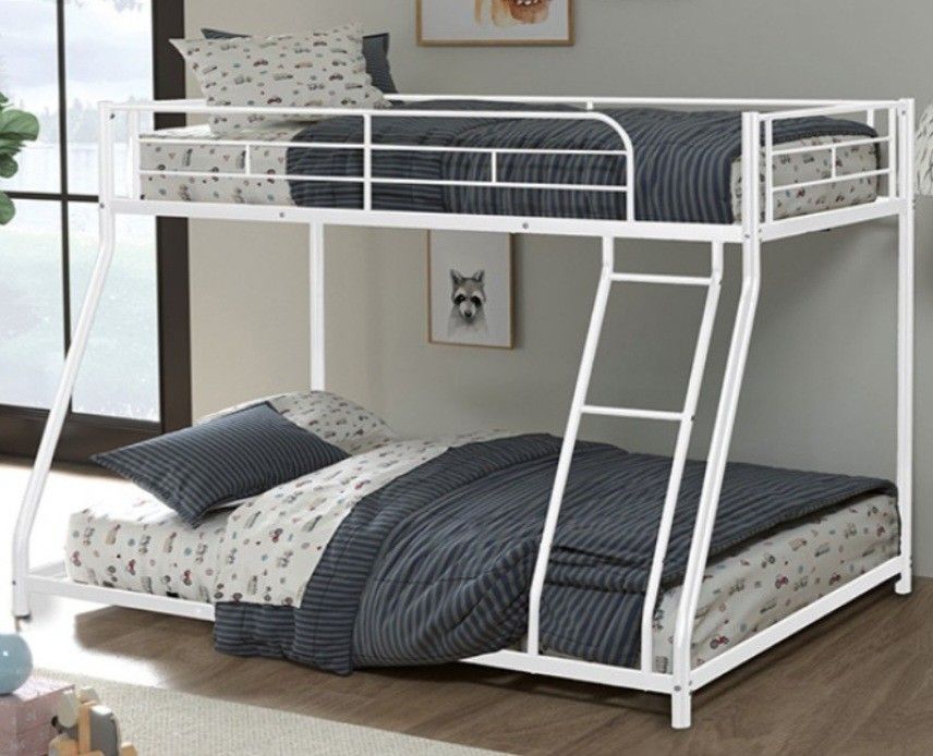Onlinefurniturebroker.com βπ« We do not have a showroom. We deliver directly from the manufacturer to your home π . π Delivery is only $40 π οΈ Assembly is an extra charge. Price on assembly depends on which item you order! π΅ We accept cash on delivery Mattresses are sold separately π₯We are voted #1 on offer up, please also view other options on our page!!! Beds, bedroom sets, sectional, sofas, daybed, futon, vanity, dining set, chairs, recliner, Loveseat, dresser, queen bed, king bed, desk, kitchen cabinets, shaker cabinet, bunk bed FM-BK901WH-TF Contemporary White Metal, Other Full Metal Construction Attached Angled Ladder Mattress Ready Twin/Full Metal Bunkbed. 56.5"W X 78"D X 54"H
