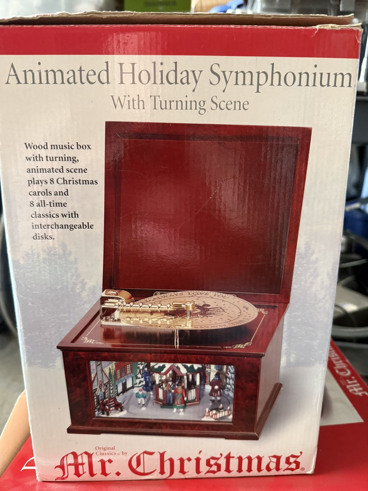 This a fully animated made of wood symphonium with turning scene. Perfect condition like new in the box.