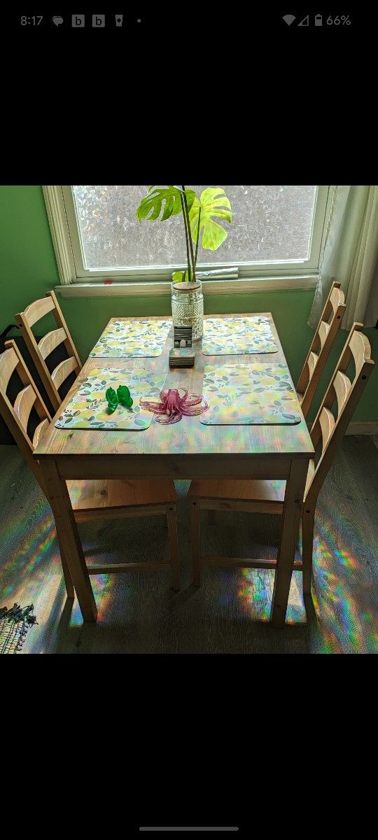 Wood table with 4 dining chairs