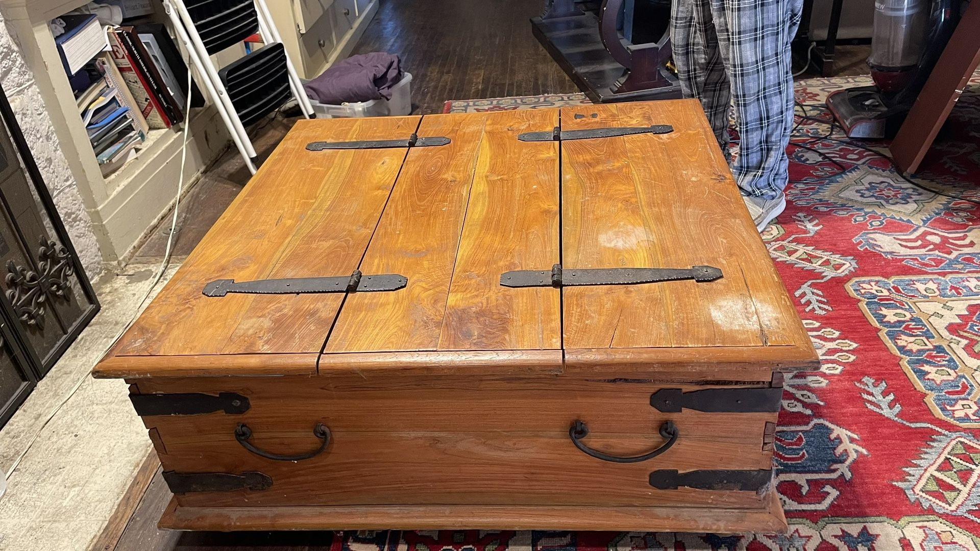 Wood center table antique is also storage opens on the top