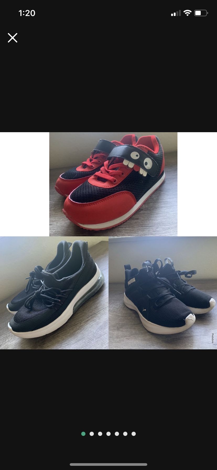 Great condition Red size 13 Blk and white size 3 Pumas size 2 New Balance size 3.5 $20 for all