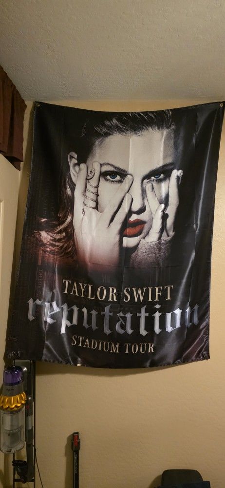 The Taylor Swift Reputation Stadium Tour Flag is . This flag measures 4' x 5', and is an original item from Taylor Swift's tour in Phoenix. Excellent / Perfect Conditon