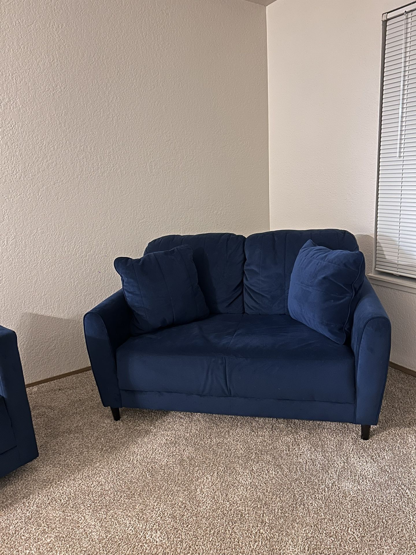 Selling a stylish deep-blue loveseat in great condition. Super comfortable with plush cushions and supportive armrests. Perfect size for apartments, bedrooms, or living rooms. Clean, no rips or stains, and well taken care of. Neutral modern look that fits almost any space.