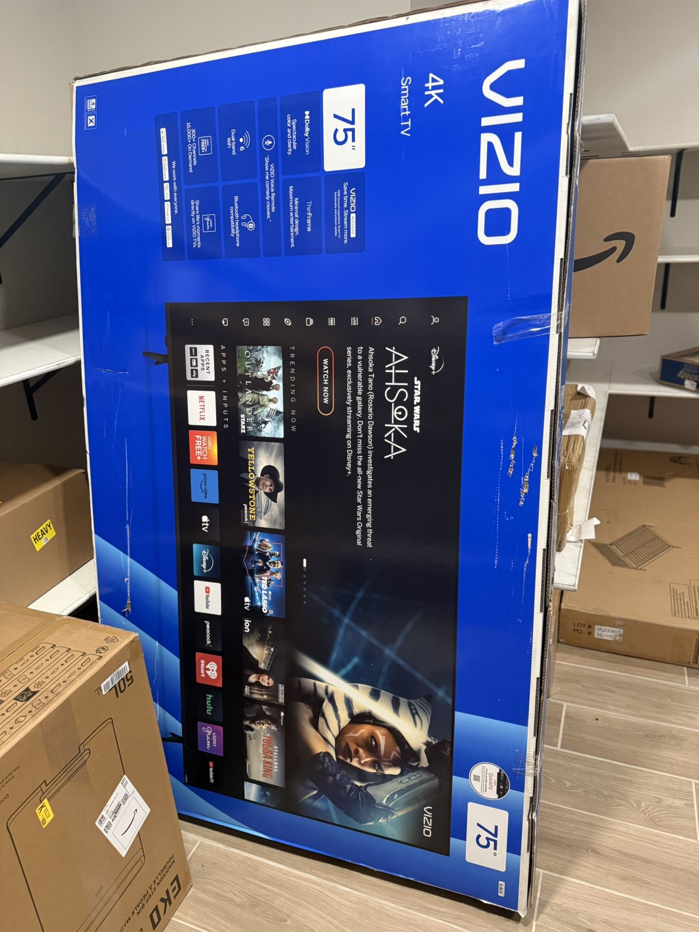 Selling 75” tv. Need gone asap. Pickup and Serious buyers only. Description: Minor damage in lower bottom due to delivery carrier hitting during transit. Screen still works, only needs the repair to the small bottom of tv. Unable to take photos as it is placed in the box.