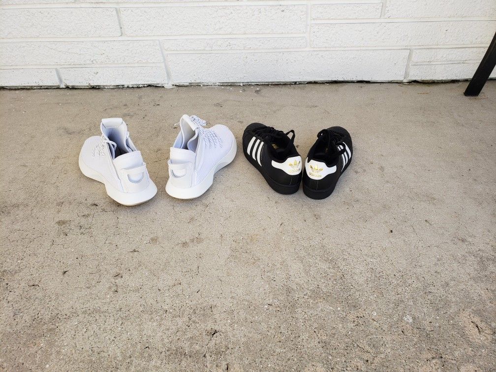 Adidas Sneaker white pair 8 1/5 black pair 8 both both are new 150 cash for both pairs