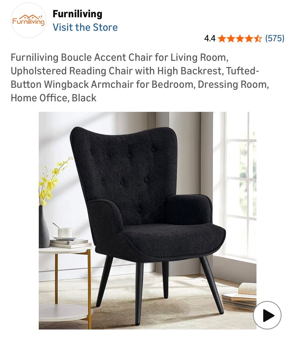 Sherpa Black Accent Chair! We had ordered the velvet one and got sent this Sherpa one! Unopened box, brand new. Cash Only Please