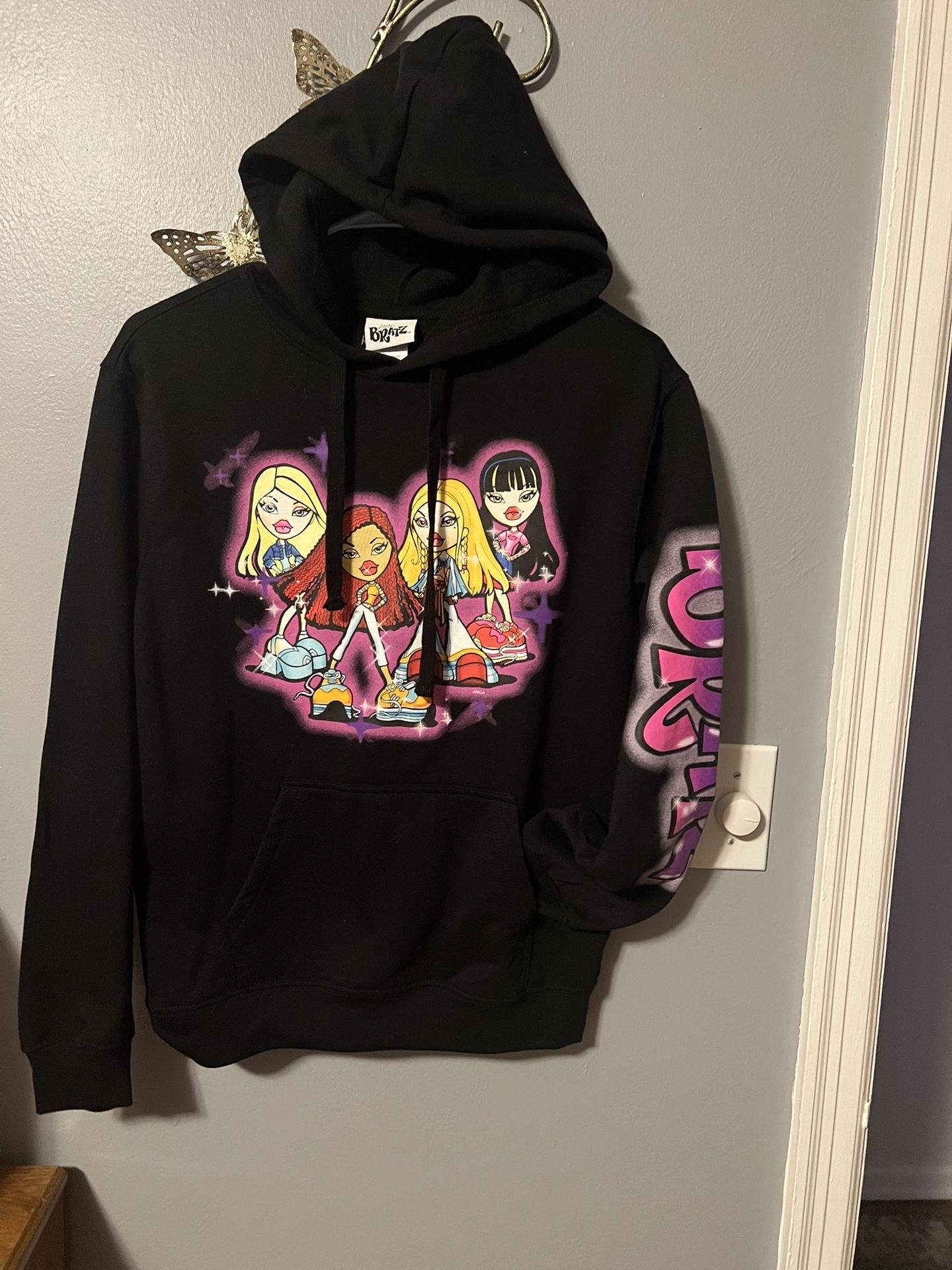 New Bratz black hoodie. Got the iconic Bratz dolls graphic on the front. Super cool 'BRATZ' logo on the sleeve too. Size Small. Great for any fan! Smoke and pets free home, thanks for looking.