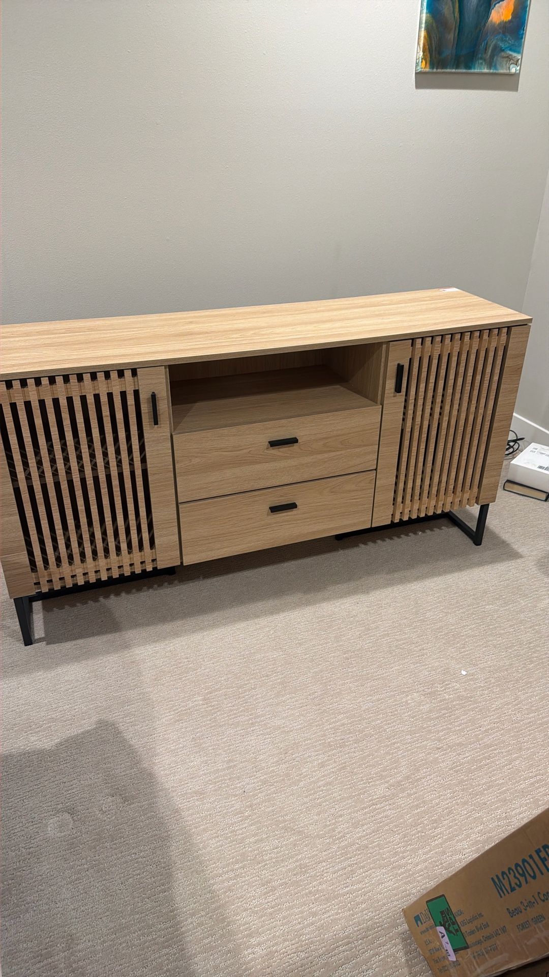 Barely used TV stand from Wayfair. Fits TVs up to 65”. The stand is 59” long 15.7” deep and 30.7” high. Weighs about 90lb. Currently listed on Wayfair for $293.