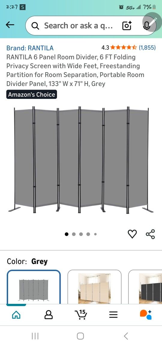 RANTILA 6 Panel Room Divider, 6 FT Folding Privacy Screen with Wide Feet, Freestanding Partition for Room Separation, Portable Room Divider Panel, 133" W x 71" H, Grey
