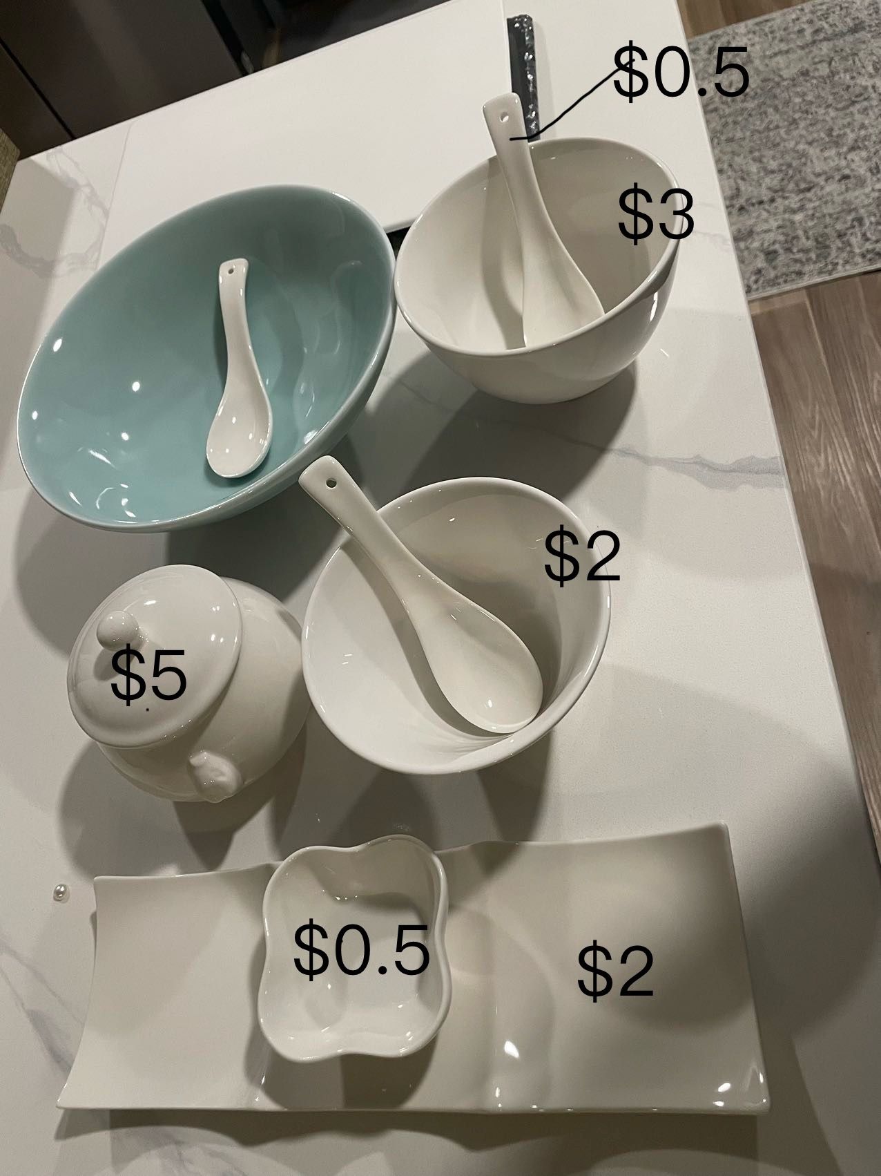 High quality of the bowls and plate in different sizes, have thousands of inventory purchased before Covid and need to let go, the price is each bowl or plate