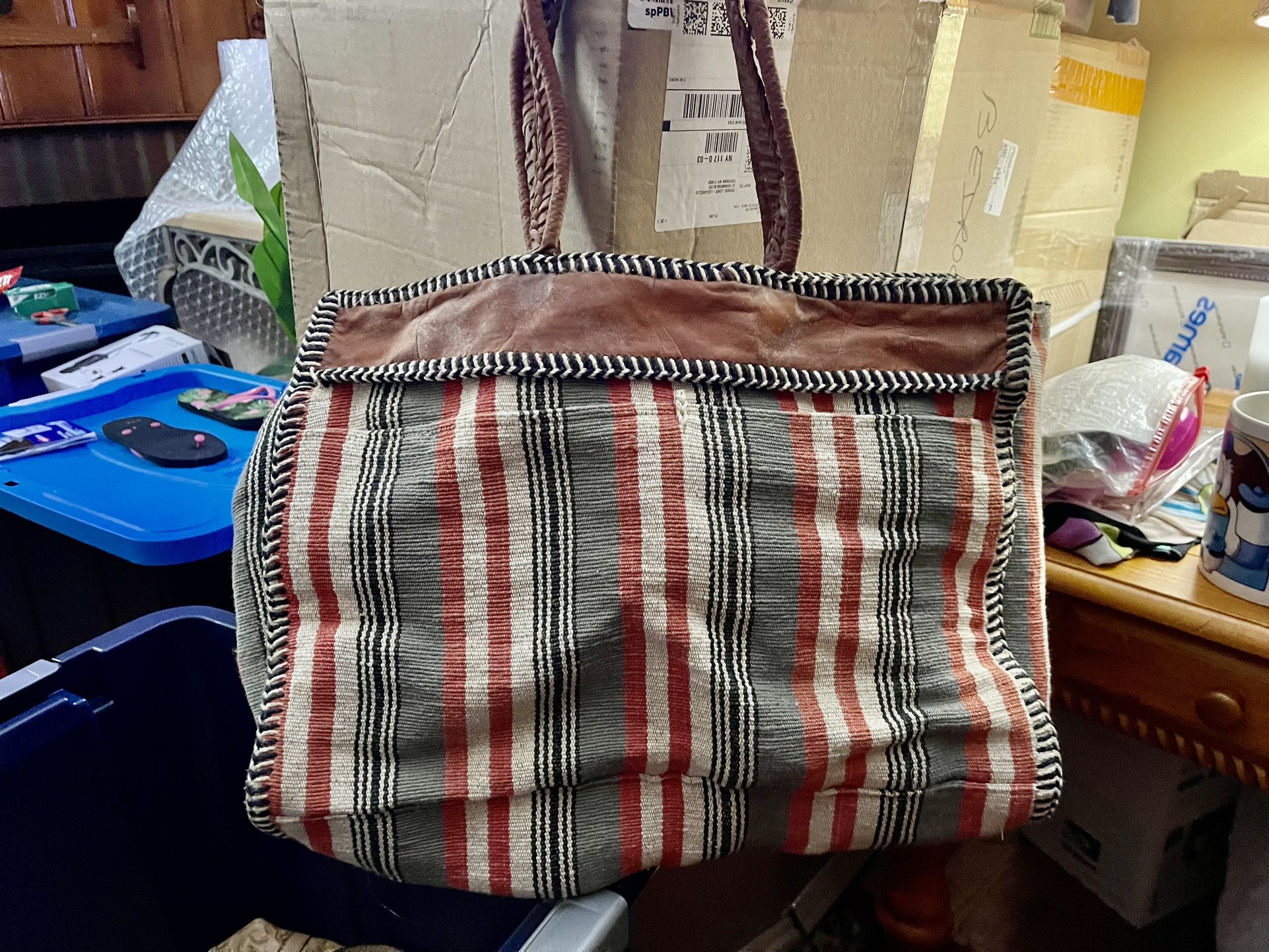 Women’s canvas extra large tote bag Good condition White fabric inside, needs cleaning. Paid 125.00 Smoke free home