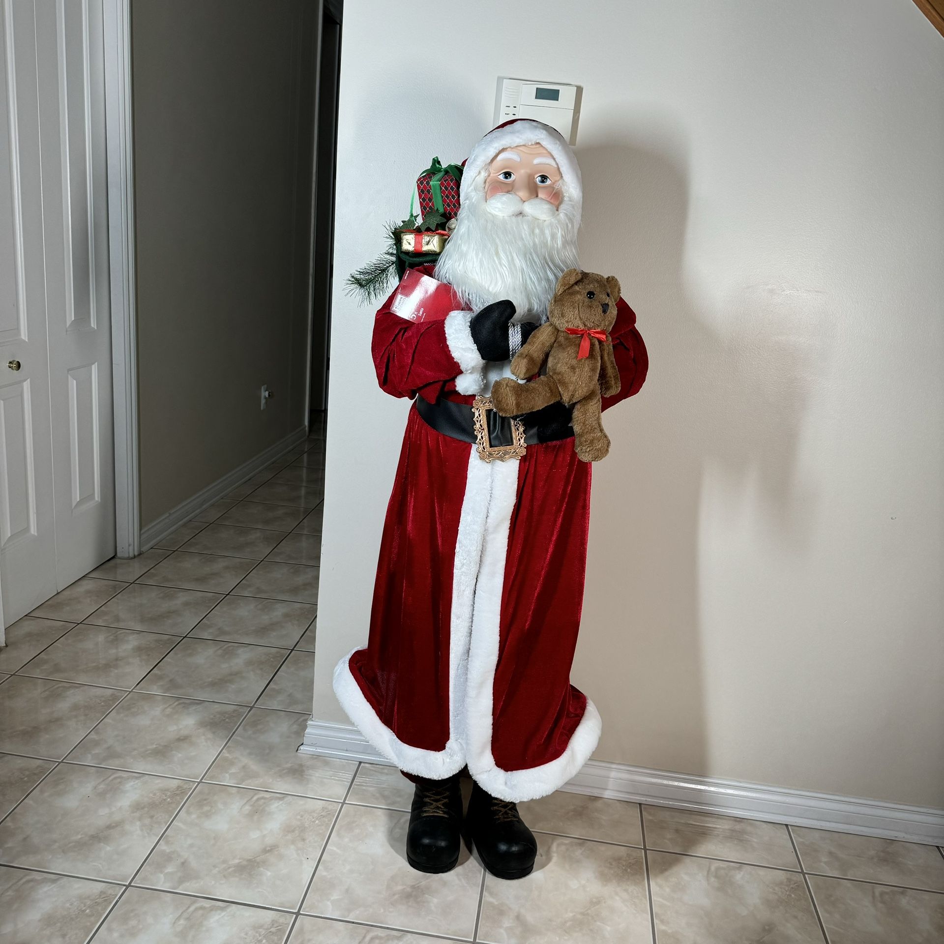 Northlight 5' Traditional Santa Claus with Teddy Bear and Gift Bag Standing Christmas Figure