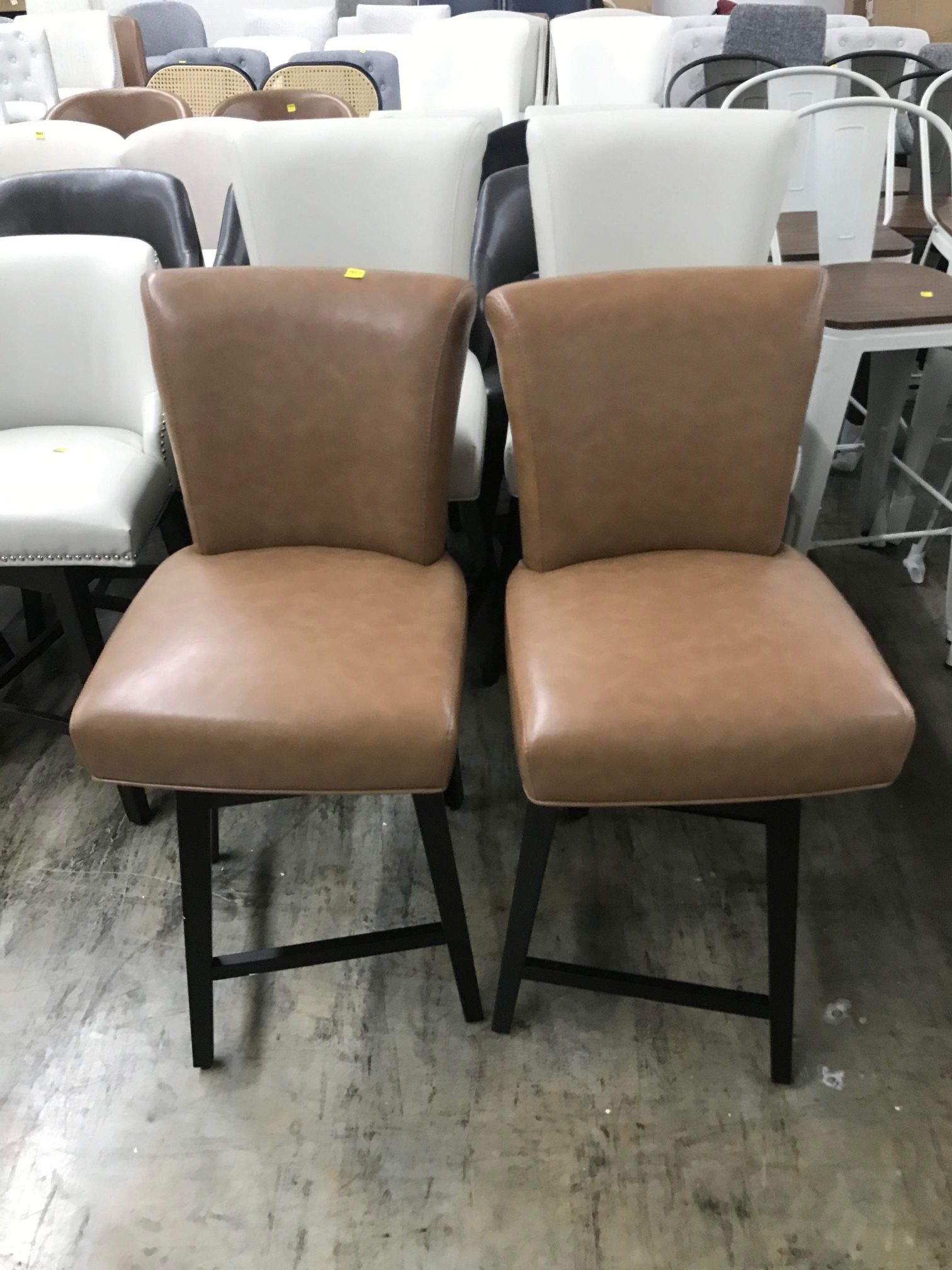 CHITA Modern 26" Counter Height Swivel Barstool, Upholstered Faux Leather Swivel Stool, Saddle Brown set of 2