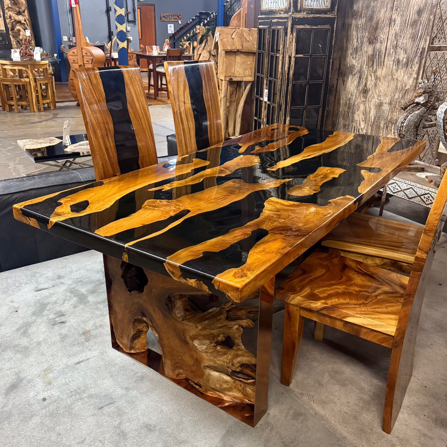 Black Resin Monkey Pod Dining Table