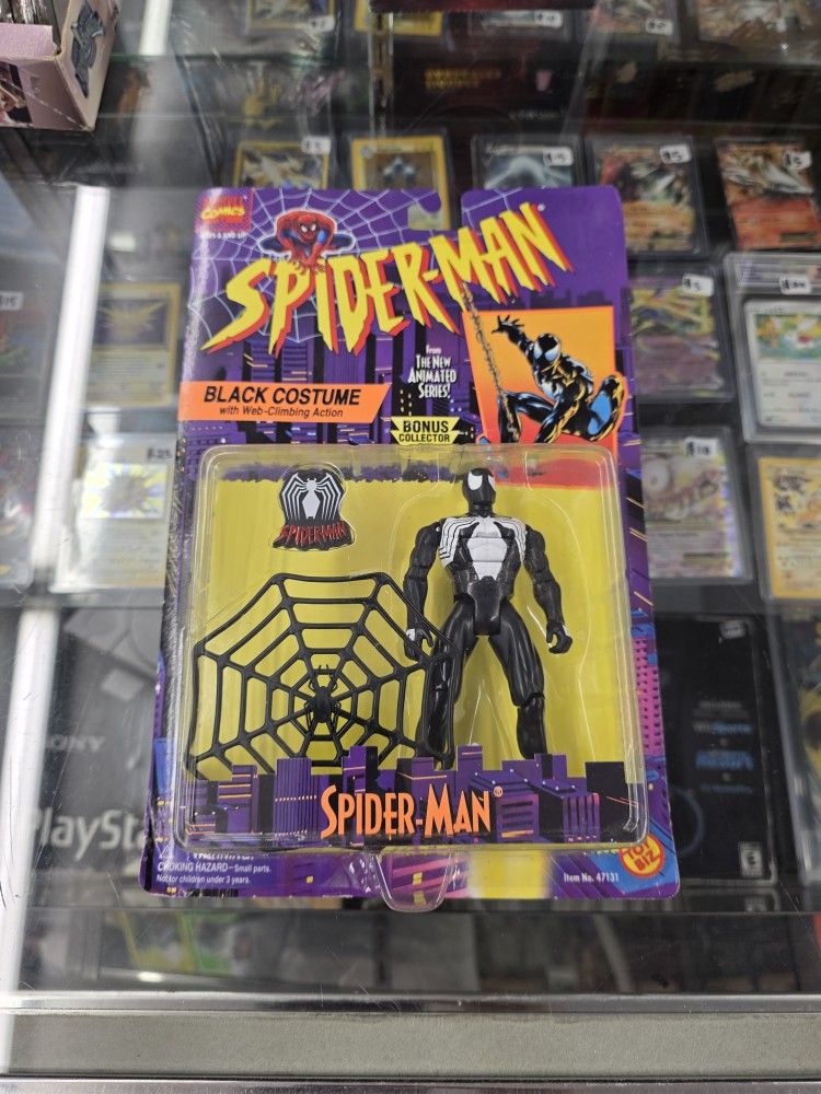 1995 Toy Biz Spider-Man Animated Series Black Costume Spiderman Figure With Pin