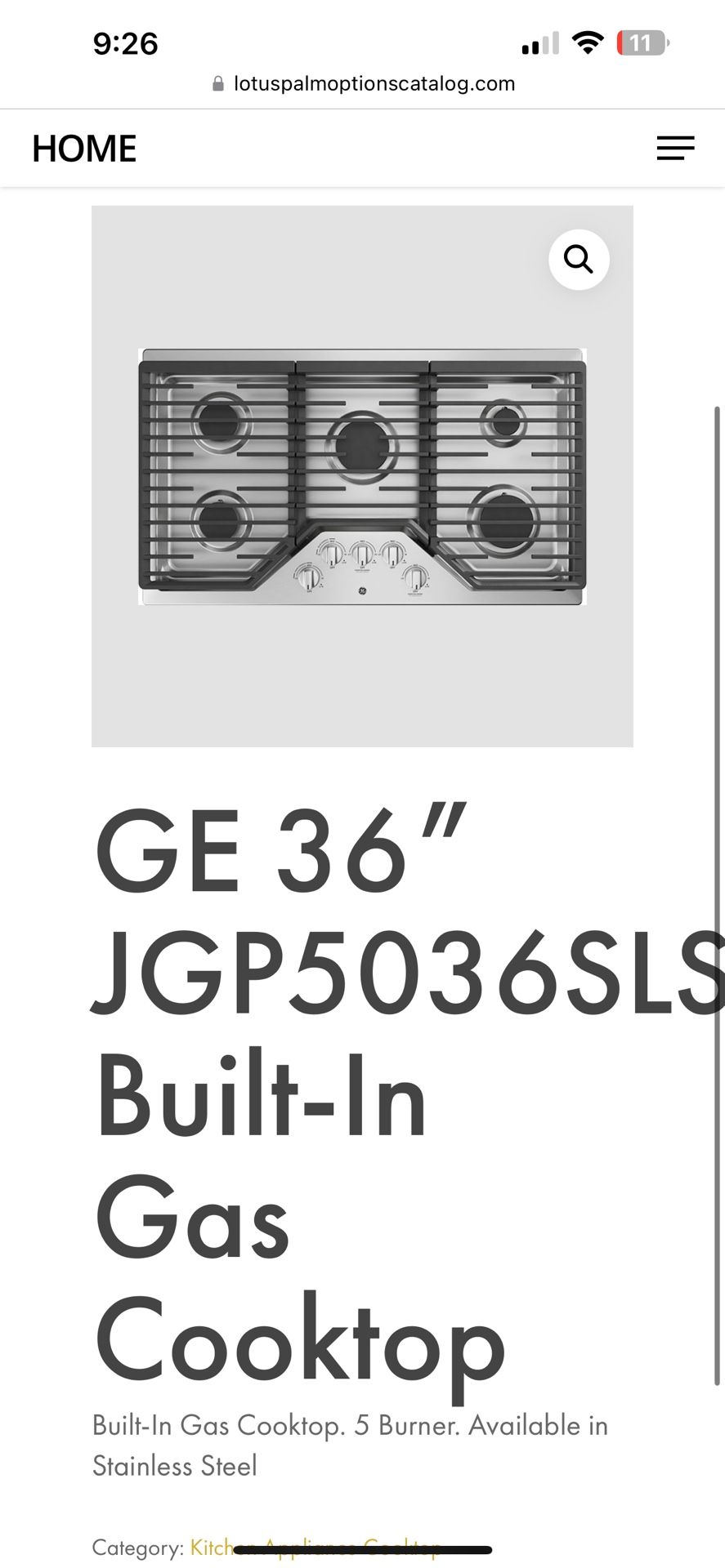 “Built In GE - 36" Built-In Gas Cooktop - Stainless Steel