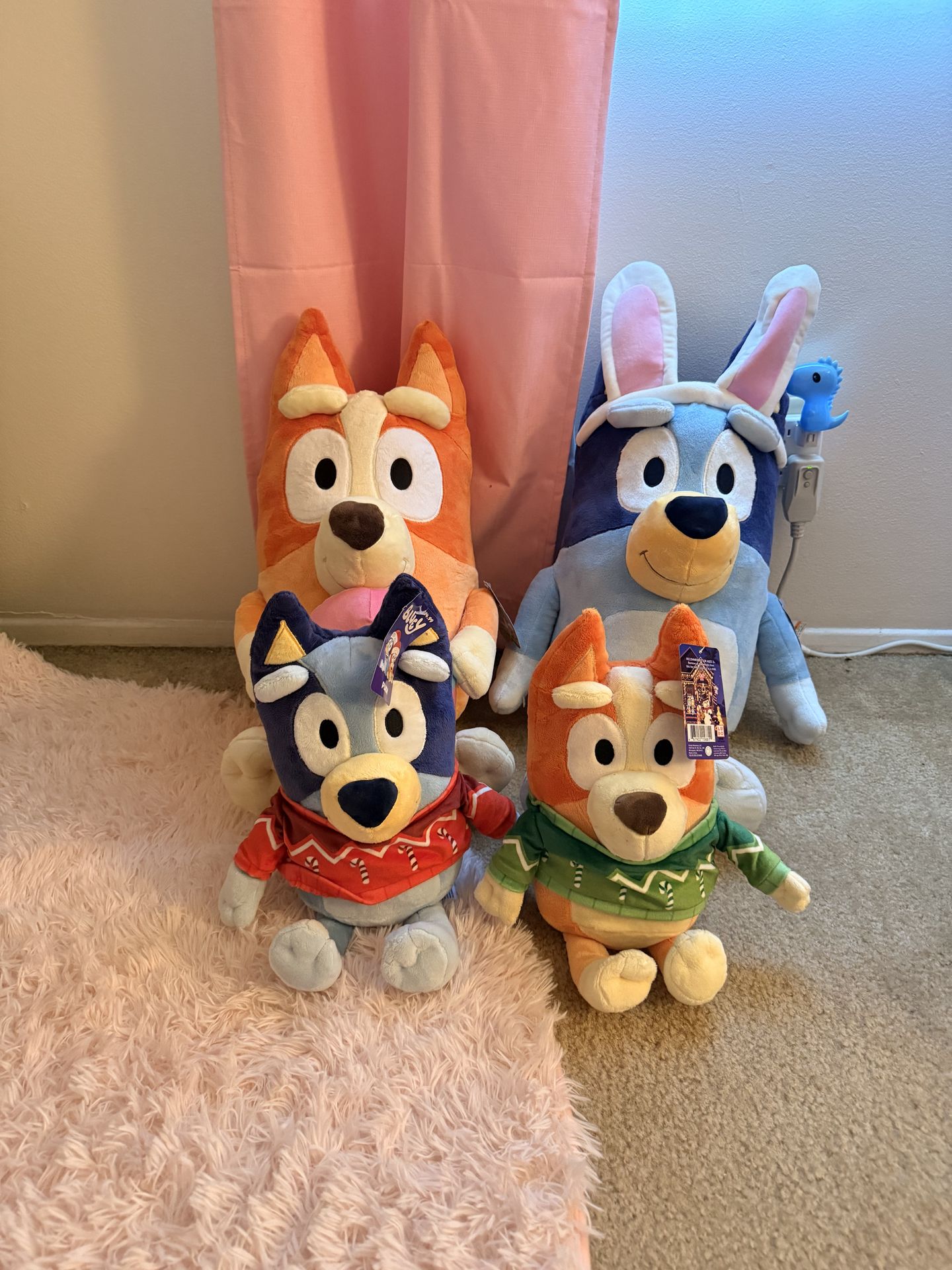 Bluey stuffed animals. Two sets. One large set and one medium set. All together
