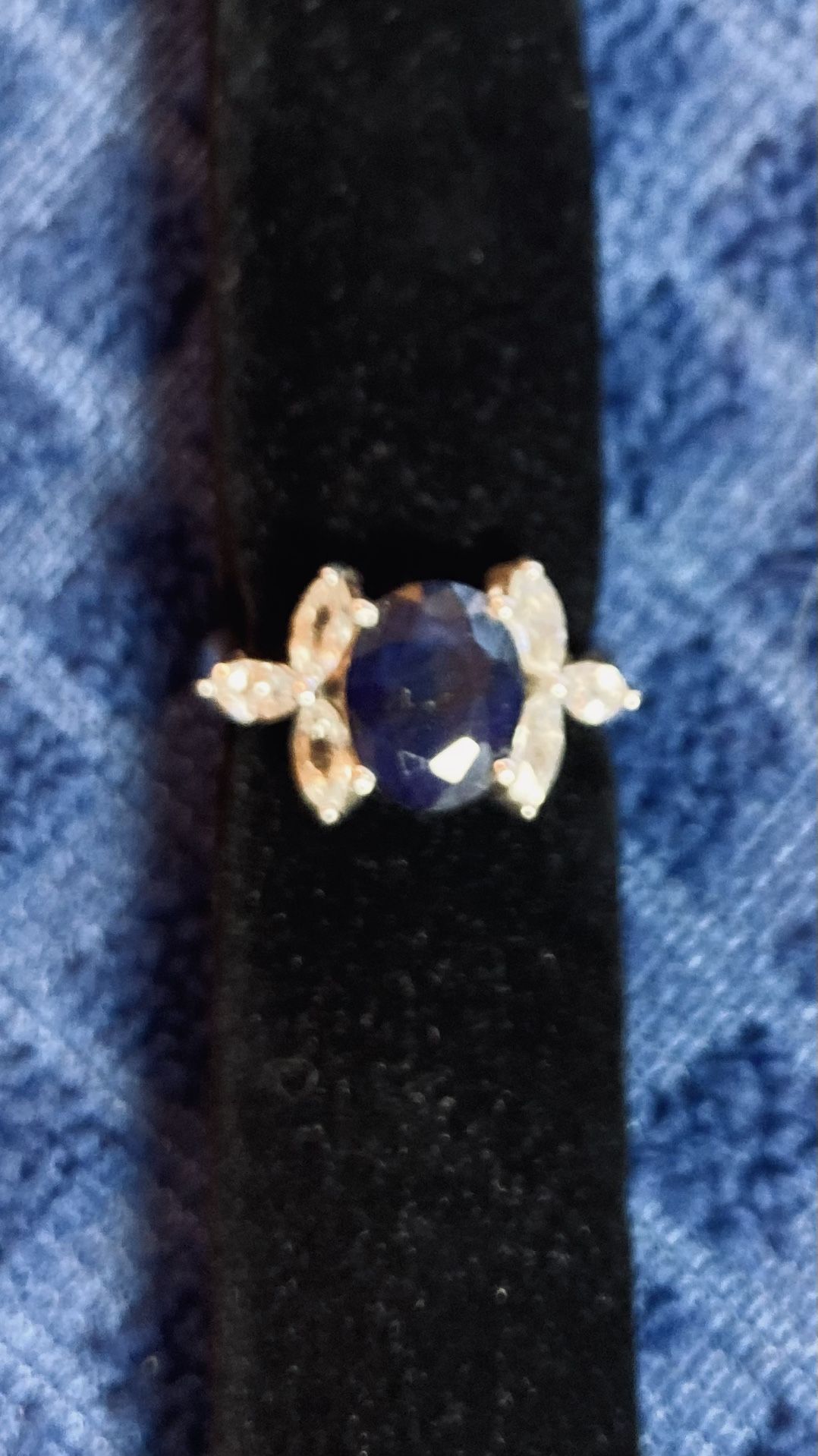Authenticity certificate included White topaz accent stones. Size 7 3.25 CT’s. Sapphire The stone is the very deepest blue, looks great on. The photos do not show well.
