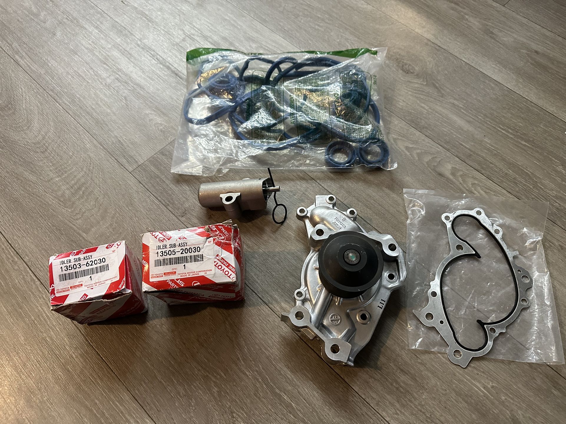 Found some unused parts from my previous vehicle . Price $80 for set pictured. 1) Timing Belt Idler 13(contact info removed)0 2) Engine Timing Belt Tensioner 3) Water Pump w/Gasket Fit For (Engine 3.OL 1MZ-FE (3.3L 3MZ-FE) 94-06 Lexus ES300 ES330 /99-06 RX300 RX330 /95-04 Toyota Avalon /94-06 Camry /01-10 Highlander /98-06 Sienna 4) Hydraulic Tensioner Compatible with 2004-2006 Toyota Camry 3.0L & 2004-2006 for LEXUS ES330 & 2005-2007 Toyota Highlander 3.3L 5) FEL-PRO VS 50588 R Engine Valve Cover Gasket Set for Toyota Sienna 6) engine camshaft seal oil ring (OEM) 7) crankshaft seal ring (OEM)