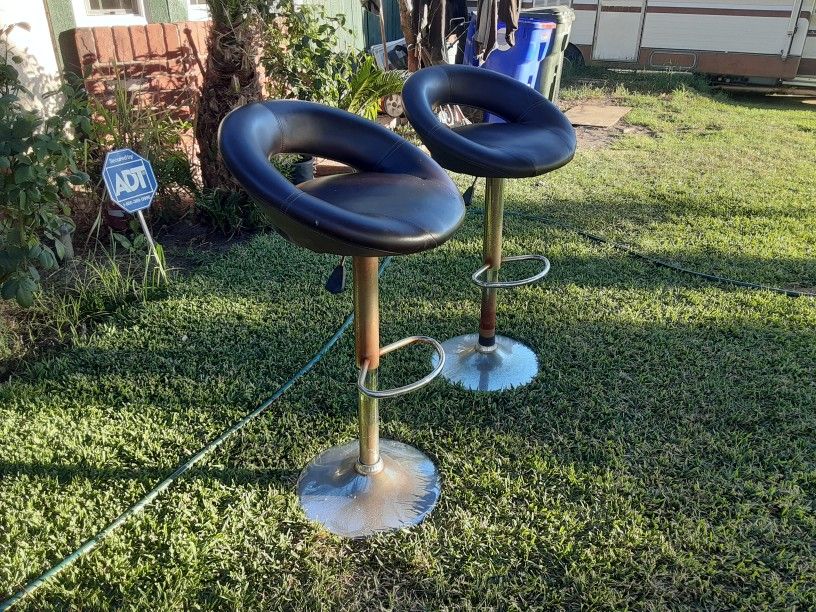 I have these two bar stools pool table or counter stools in great condition need a little cleaning on the Chrome but they do work they go up and down Fine upholsteries in good condition $40for the pair