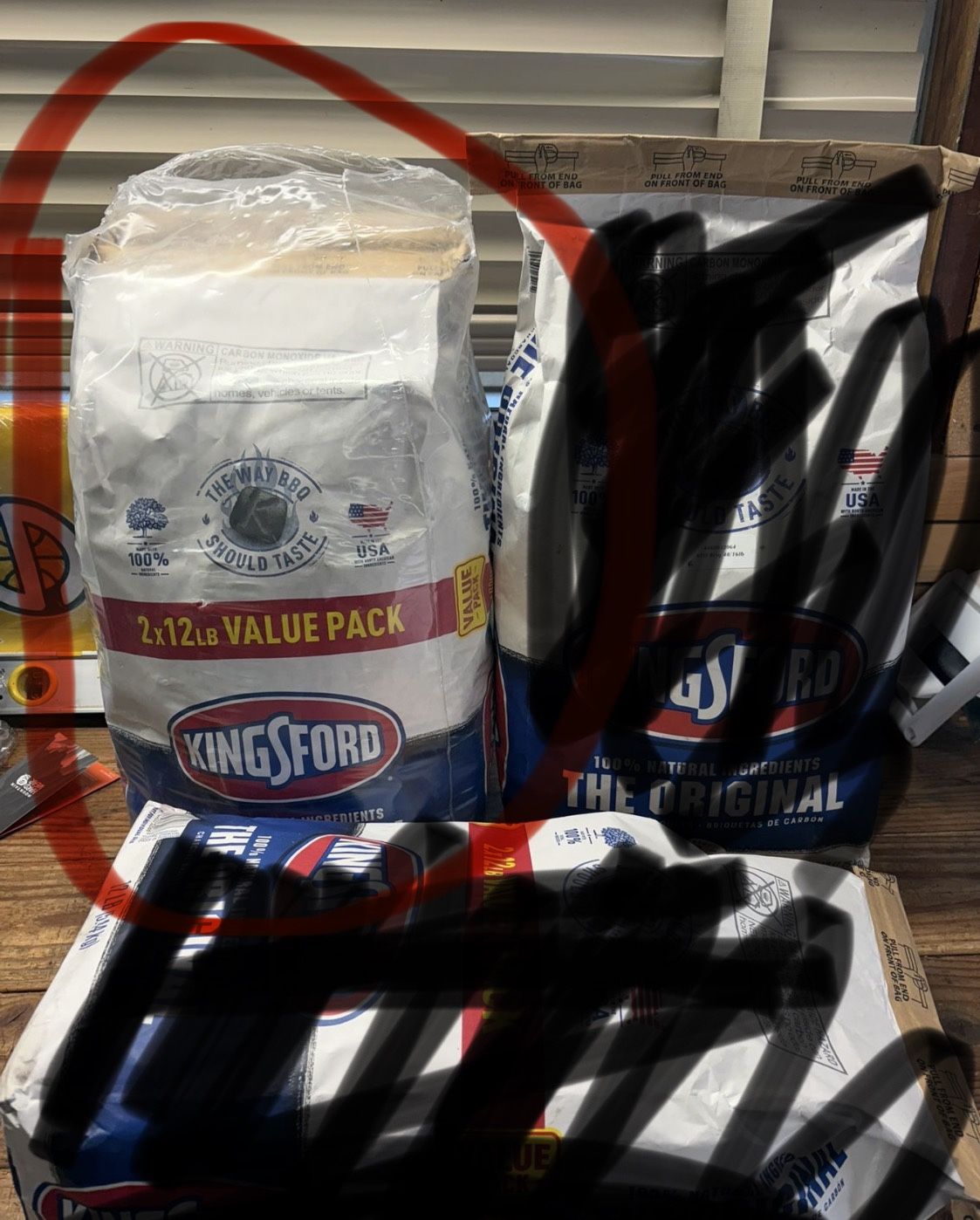 You’re buying two bags in upper, left corner: Kingsford Charcoal Briquets, in sealed bags. Pickup near Roosevelt/Greenlake. 2 x 12 lbs
