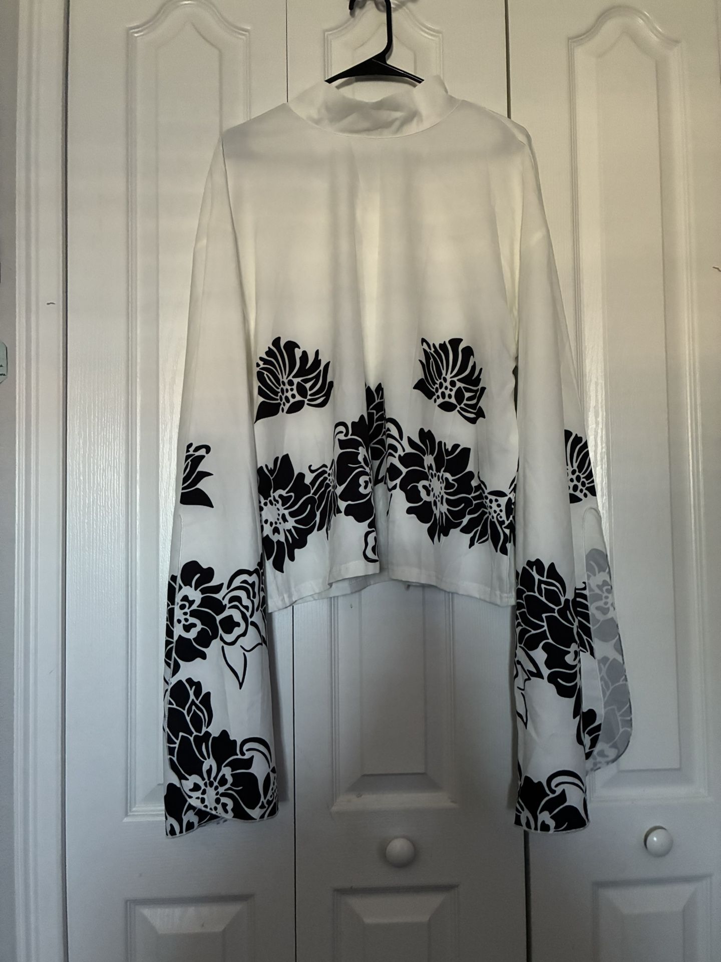 Beautiful SHEIN White Blouse with Black Design & Long Accented Sleeves XL
