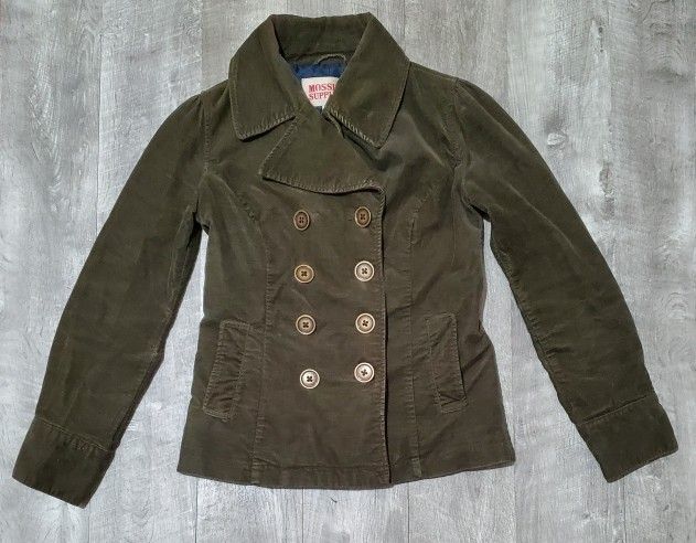 Women's Small Mossimo Supply Co. Green Double Breasted Button Up Coat. Pre-owned in good condition. Missing one Button on the back.