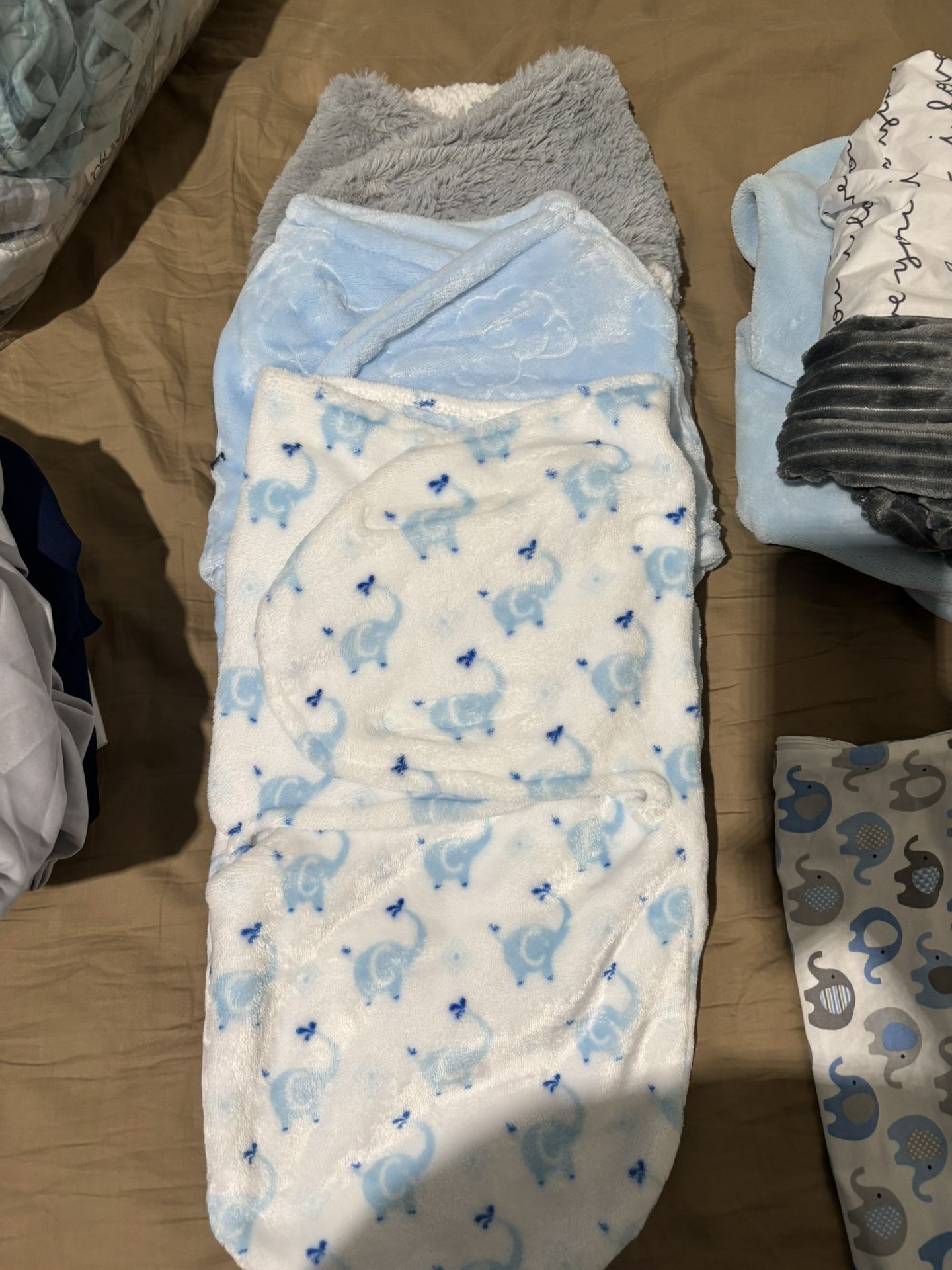 5 bassinet sheets 2 changing table covers 3 Swaddle Sleep Sack- just washed never used 1 infant car seat cover Most just washed never used For babyboy