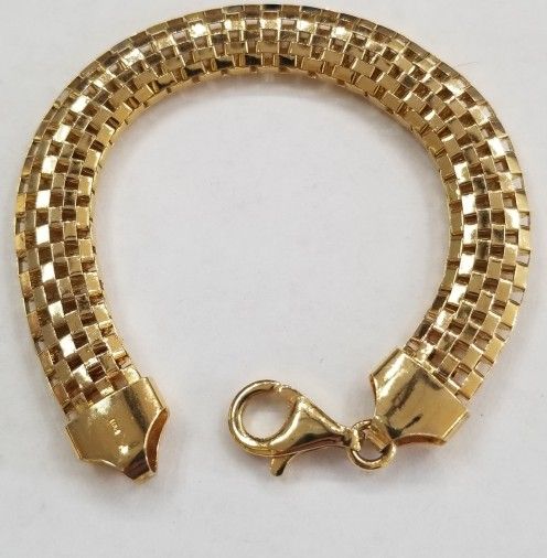 Gold plated sterling silver bracelet. Mesh style, made in Italy. Is 7 1/2 inches long and weighs approx 12grams total weight.