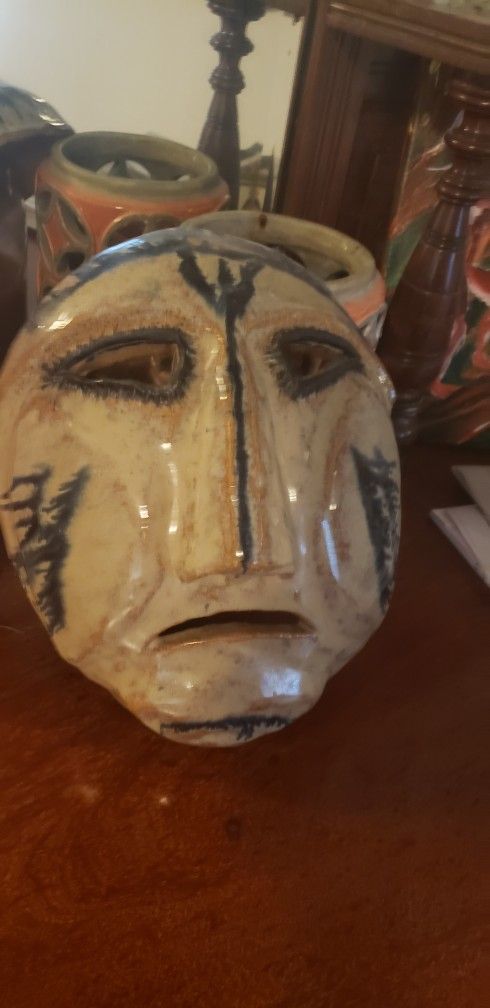 Wall hanging clay ceramic mask made my dads friends in the 70s. Size - human face size is to scale!