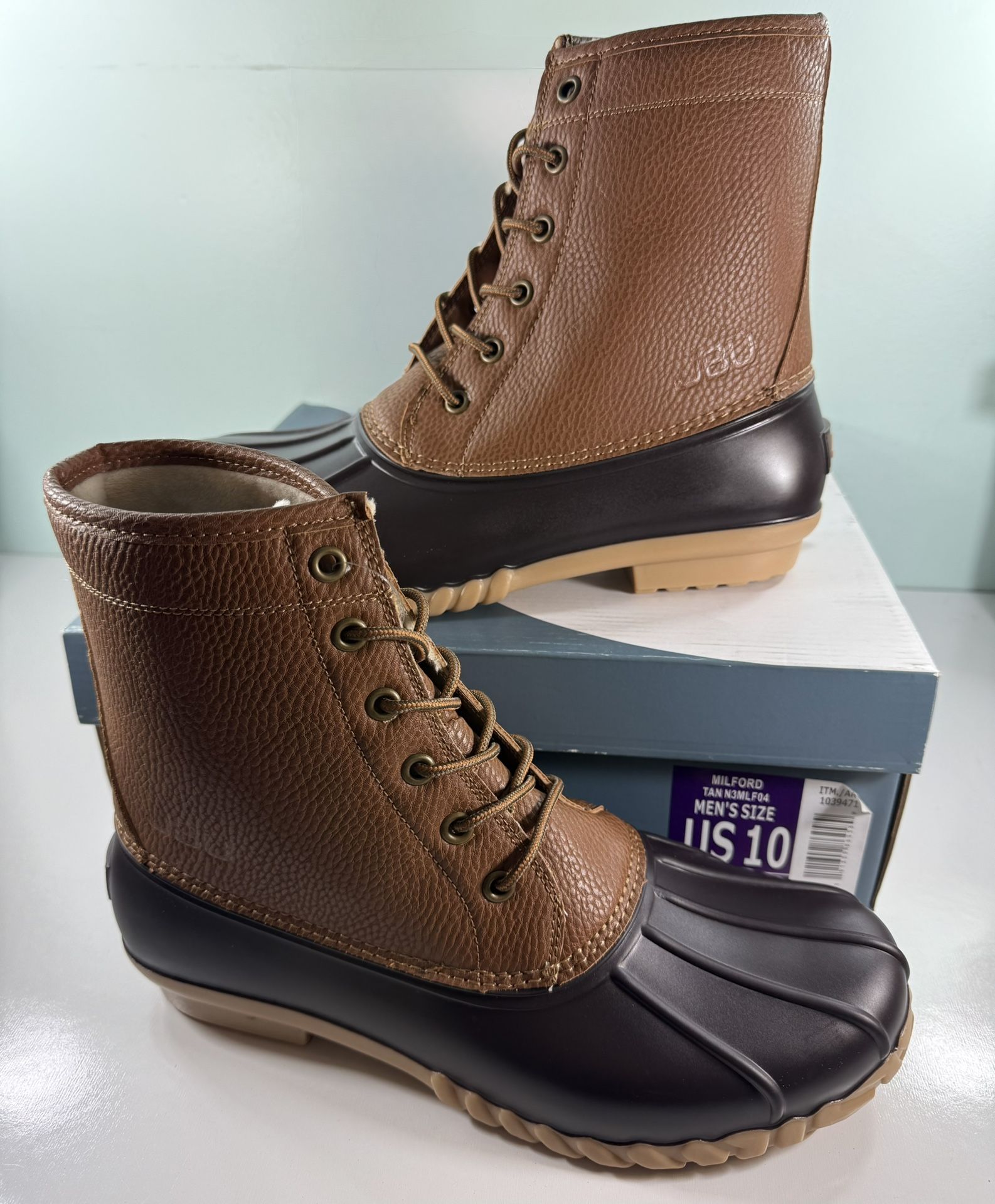 NEW JBU Maine Duck Boots Mens Lined Faux Fur Milford 8.5" Shaft Ankle Rain - size 10