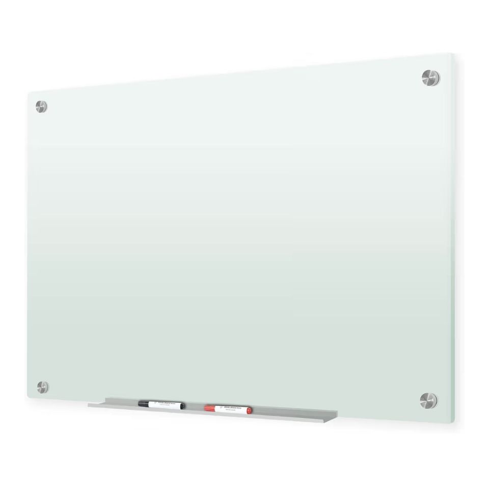 Frosted Glass white board 35x47 inches, dry erase and magnetic. Includes markers, tray, and erasers. Never been used or mounted. No original box still has foam corner protectors.