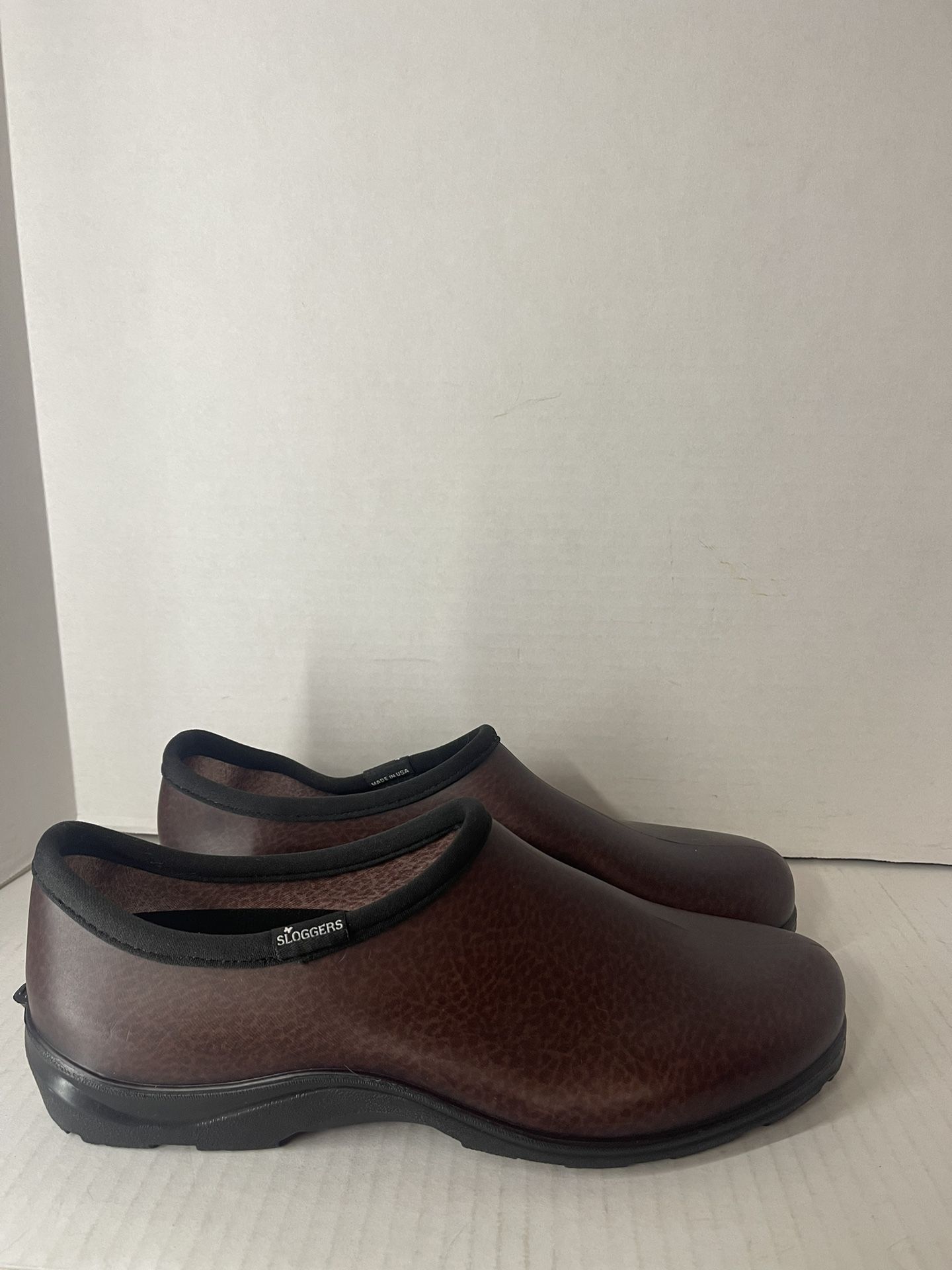Outdoor Slip-On Mens Brown Leather-Like Finish Sloggers Waterproof Garden Shoes Size M’S 11