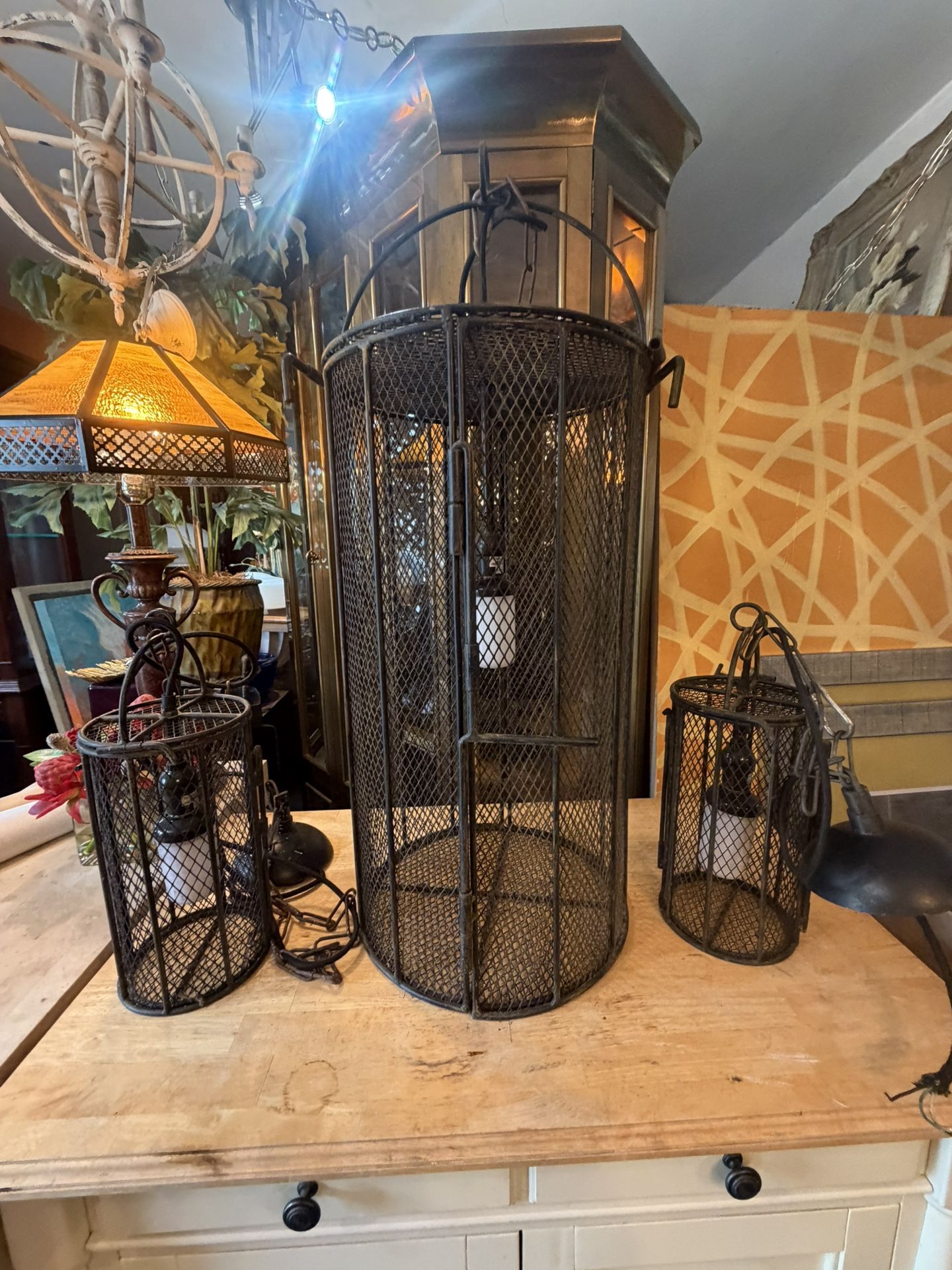 Vintage Industrial Style Solid Metal Hanging Lamps Set Up Three