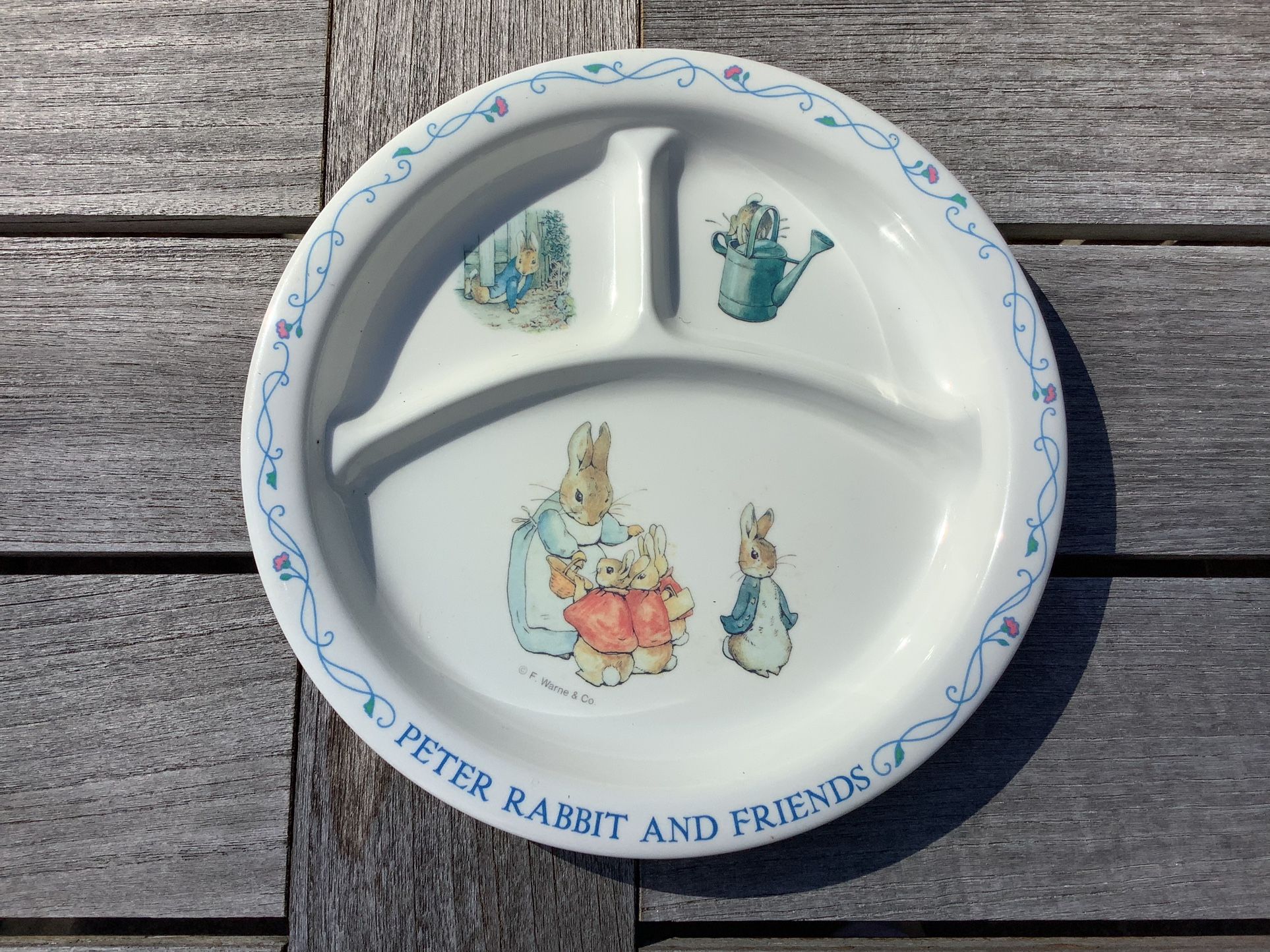 PETER RABBIT AND FRIENDS. 8 1/4” ROUND. THREE SECTIONS. F. WARNE & CO.