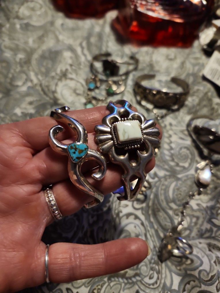 Sterling cast native American bracelets available one white buffalo and one turquoise