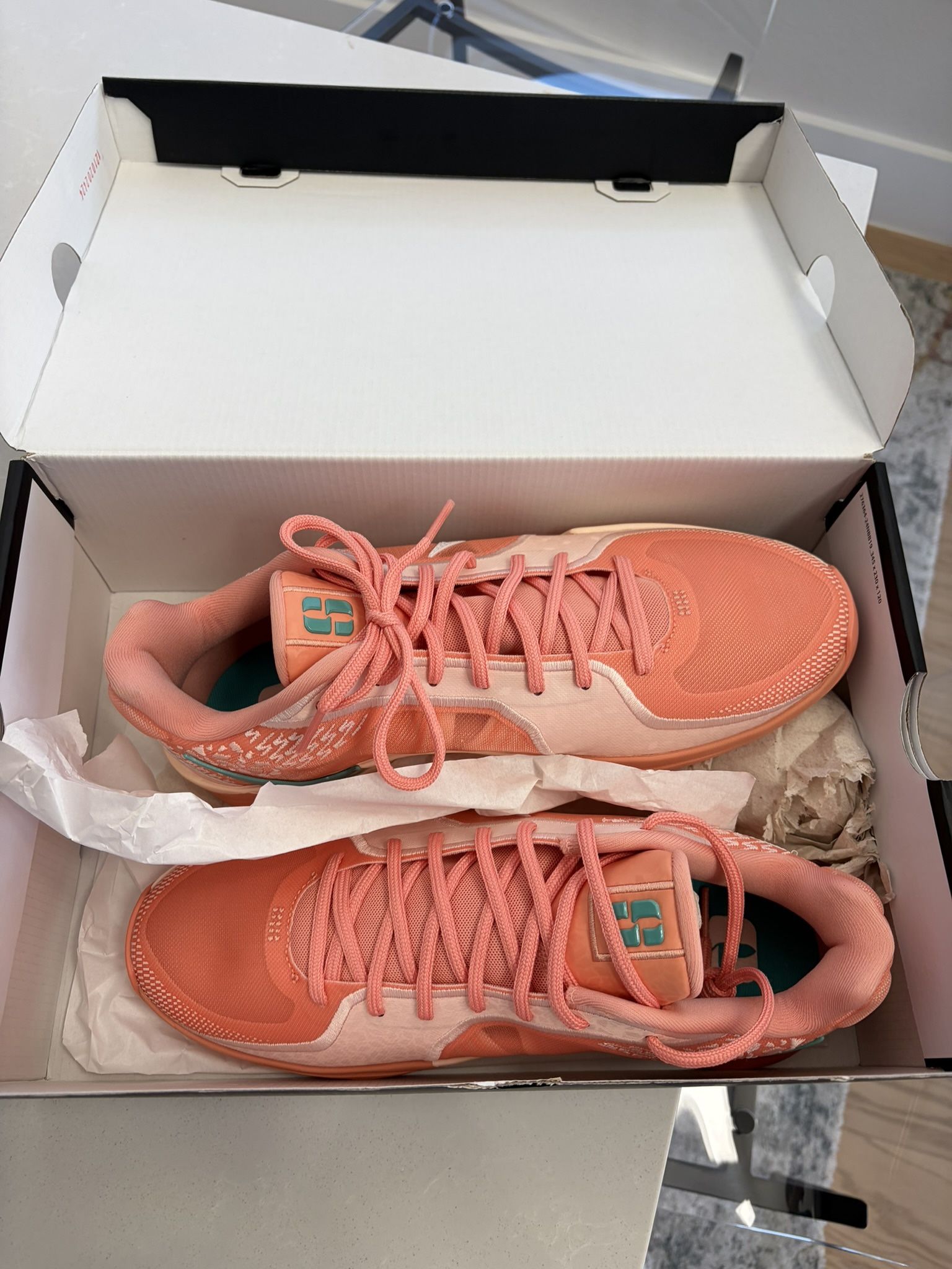 Brand new Sabrina 2 “Activate”s in size 11. Highlighted in an Apricot Agate, Washed Coral, Washed Teal, and Light Bone color scheme, the Nike Sabrina 2 boasts a breathable, peach-hued mesh upper, offering comfort and lightweight support.