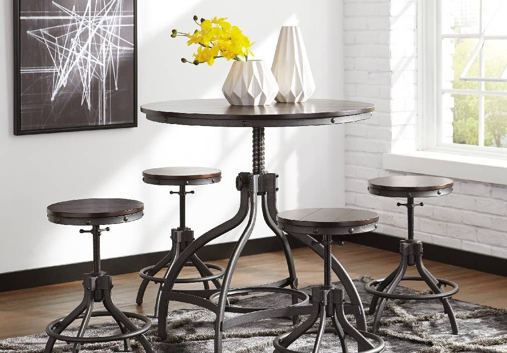 Brown Counter Height Dining Table and 3 Bar Stools