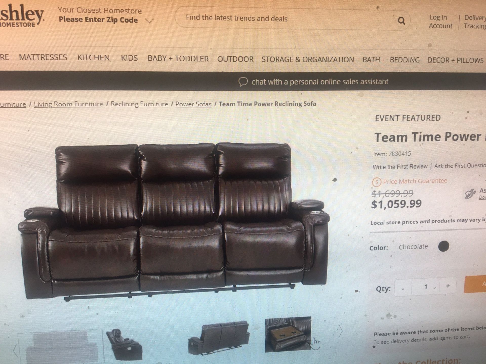 Beautiful Bran New Ashley Sofa Recliner Dark Brown With A Drop Table
