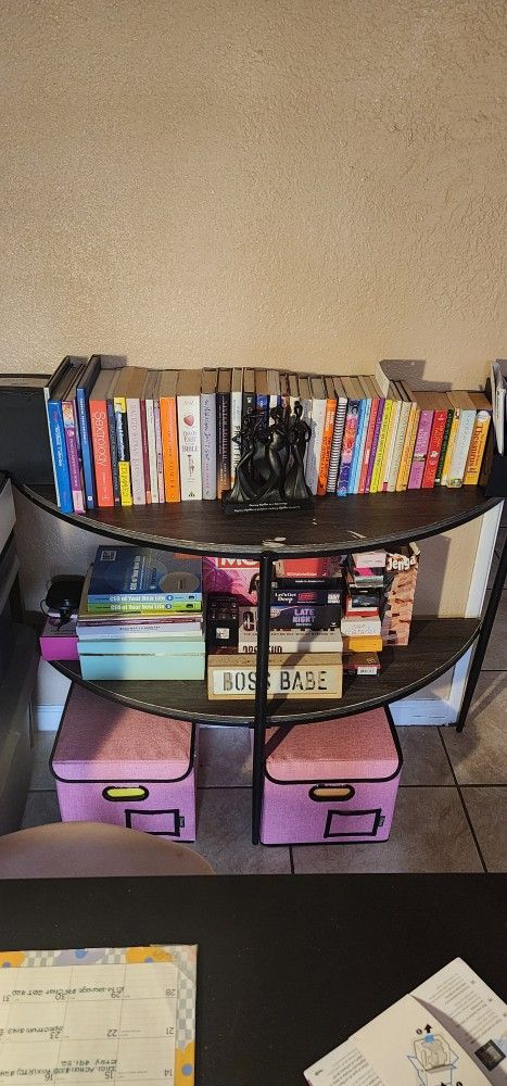 72 inches long console/entryway table Light wood top & black outline and legs Has a few scratches Very sturdy & holds alot of weight In Good Condition!